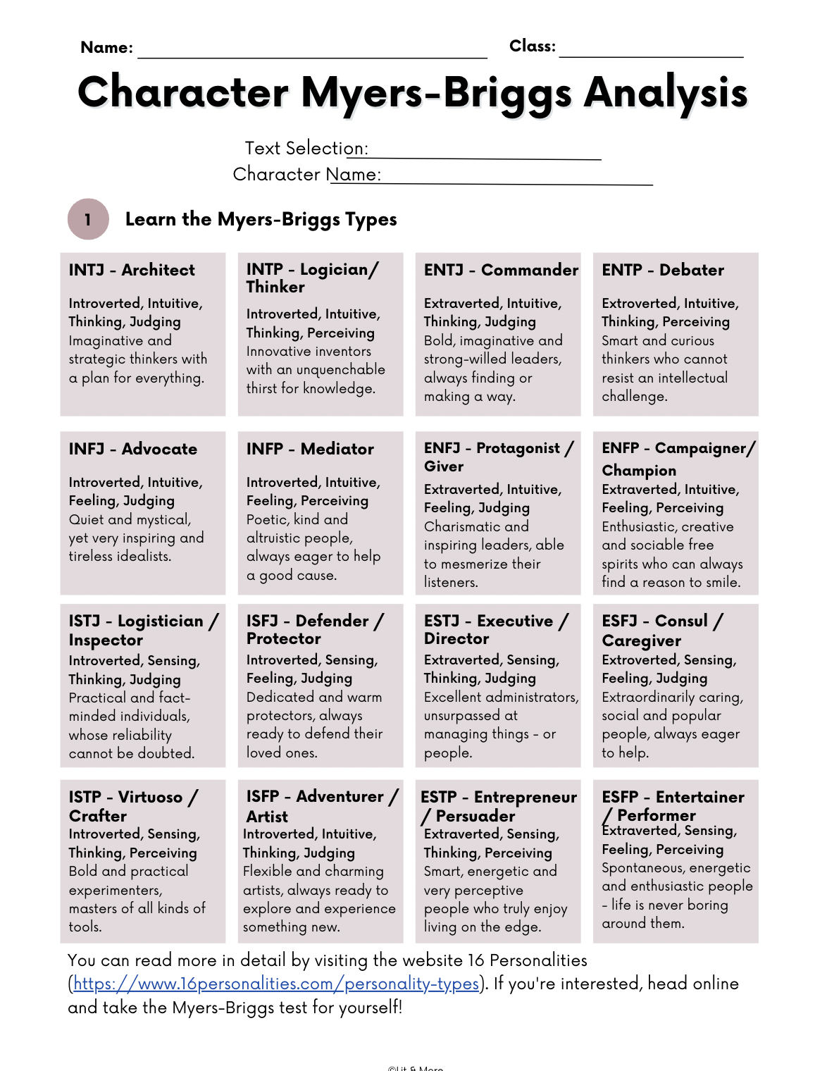 These personality quizzes engage students in character analysis by asking them to categorize characters by their Myers-Briggs type, Enneagram number, or Astrology sign. Links and instructions are included with each assessment, so no prep is required! Best of all, this can be used with any text!